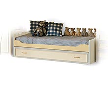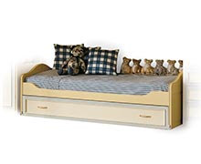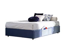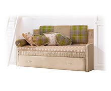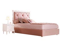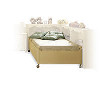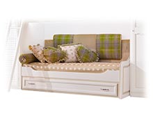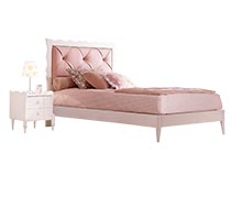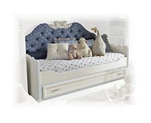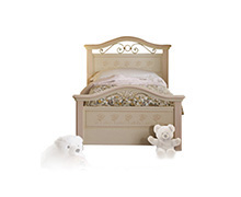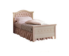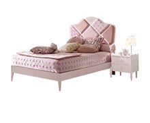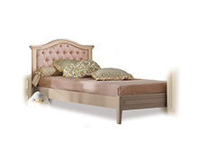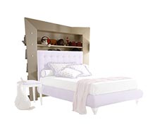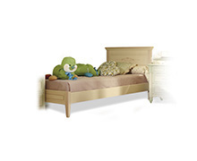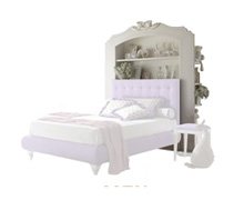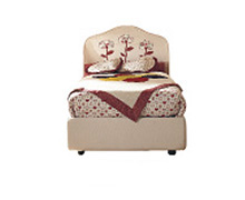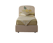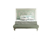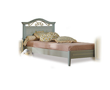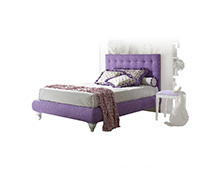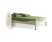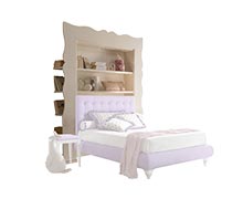 Letto sagomato con pannelli imbottiti e giroletto legno