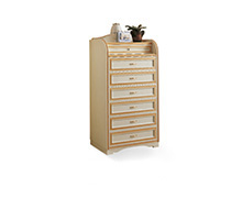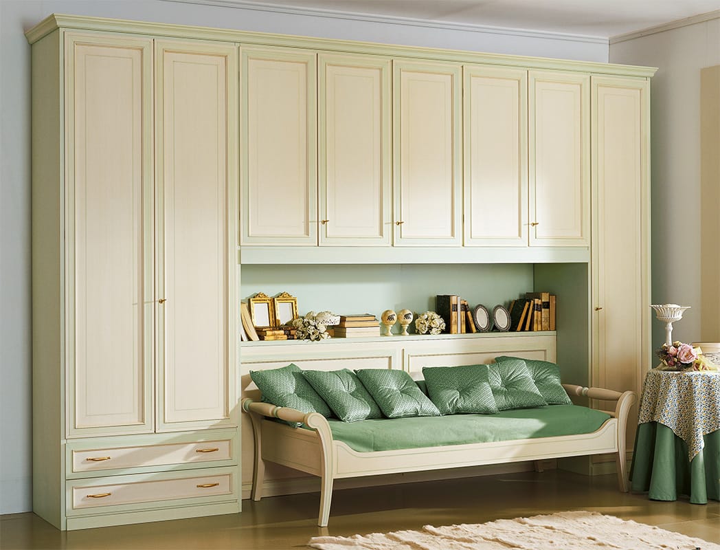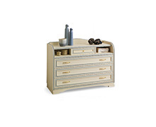 Particolare attenzione è riservata agli interni degli armadi interamente in noce tanganika ed arricchiti con svariati accessori interni come il pratico vassoio estraibile disponibile con un semplice ripiano (in legno e cristallo) o con una griglia per riporre cravatte o cinture, oppure nella versione con portapantaloni.