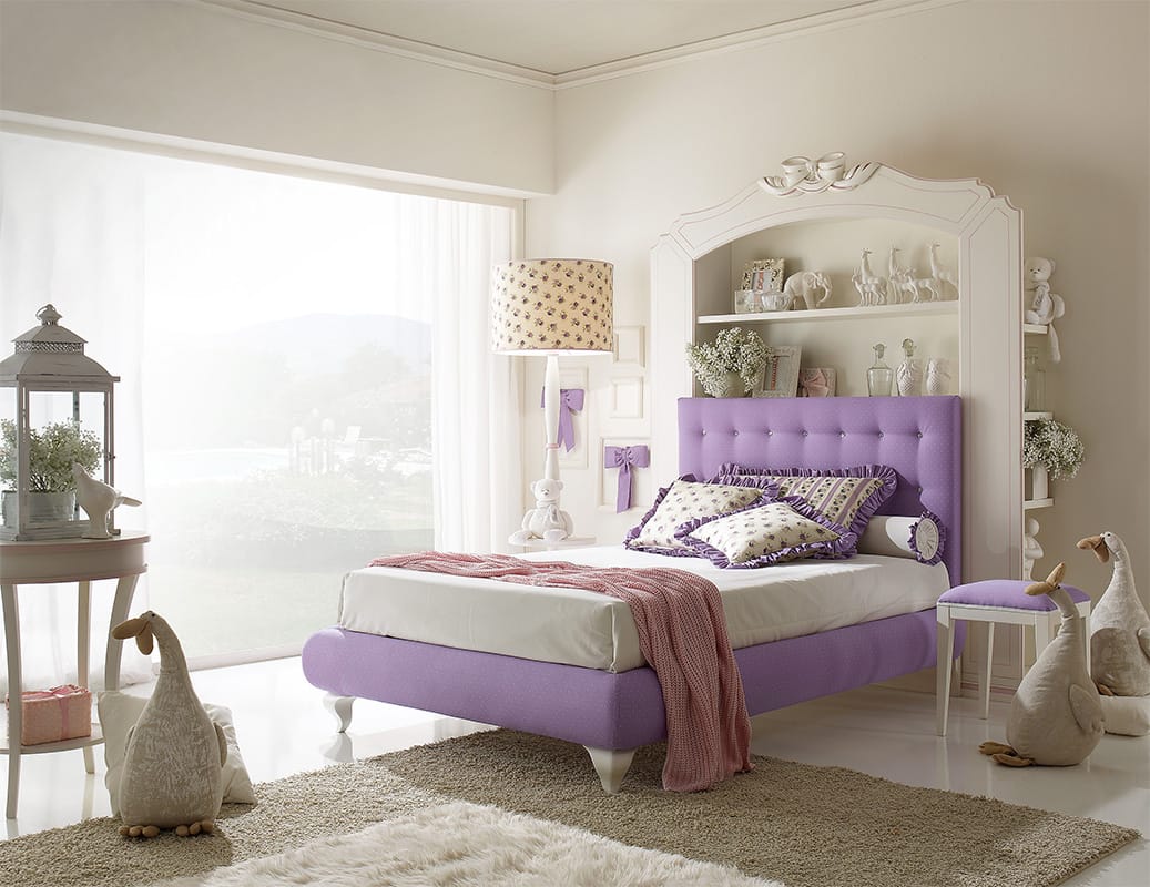 Letto sagomato con pannelli imbottiti e giroletto imbottito