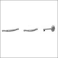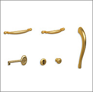 Handles, knobs and keys in zamak, available in 4 different finishes. This type of handle is not available for curved drawers..
